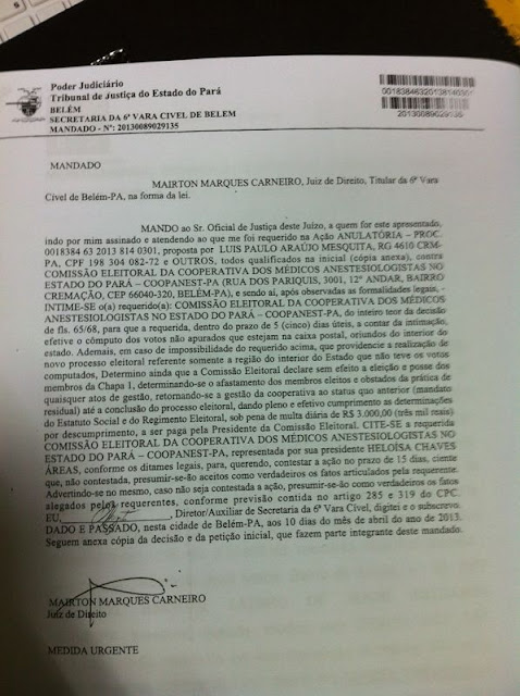 despacho na quinta-feira, 9, nos autos do processo 0018384-63.2013.814.0301, o juiz Mairton Carneiro recebeu incidente de falsidade