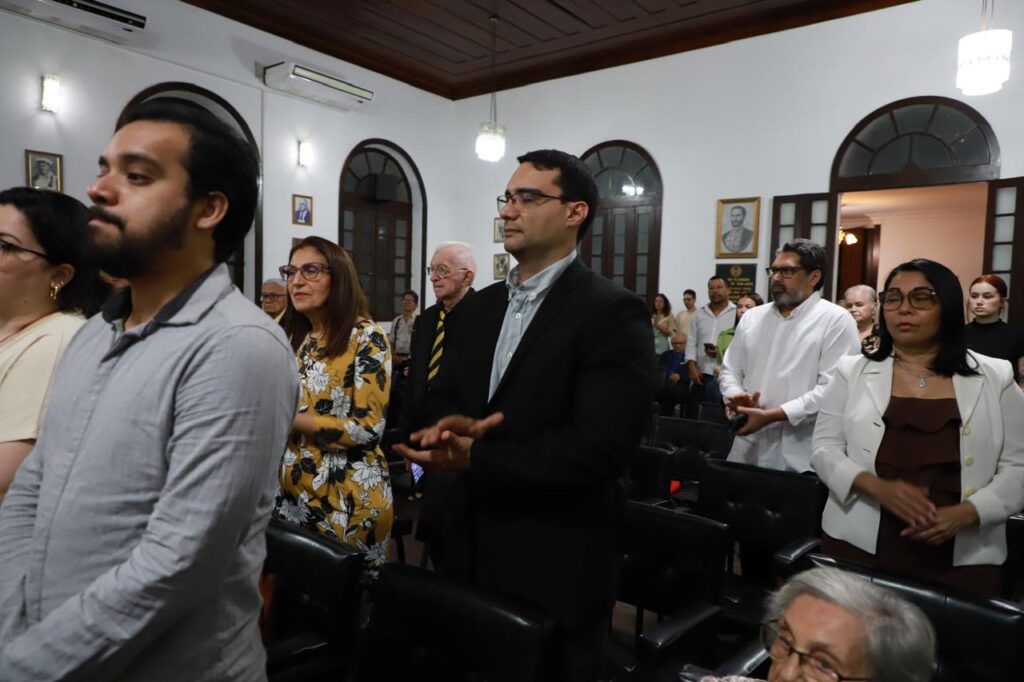 Em seu pronunciamento, o presidente Octávio Pessôa ressaltou que a chegada dos novos membros fortalece a missão da Academia de promover o debate sobre o jornalismo, reconhecer o mérito profissional e preservar a memória da imprensa no Pará. “Cada novo integrante traz uma história de dedicação à notícia, à ética e à verdade. A APJ se enriquece com essas trajetórias e reafirma seu compromisso com a comunicação do nosso Estado. Reconhecendo e valorizando o mérito de todos os atuais membros da APJ, especialmente os que me precederam nesta Casa, todos com seus valores e qualidades, eu convido cada um de vocês, novos acadêmicos, a nos darmos as mãos e nos empenharmos pelo engrandecimento e valorização desta Academia”, acentuou, lembrando que os novos membros chegam no momento dos 35 anos da instituição e destacando, ainda, que será lançado pela APJ o livro Amazônia Ambiental, organizado por Tânia Monteiro, no próximo dia 7, a partir das 17h, na Gramophone (Av. Governador Magalhães Barata, 836, São Brás) e a Tesoureira Roberta Villanova providenciará a confraternização natalina.