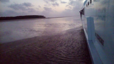 A lancha rápida que faz a linha Belém/Soure encalhou hoje em um banco de areia, no Marajó. O solavanco violento fez as pessoas que estavam em pé literalmente voarem, e um dos tripulantes atravessou uma porta vidro e sofreu um corte na cabeça. Uma “rabeta” (pequena embarcação com motor de popa, adequada para rios de pouca profundidade) prestou socorro a ele e a outros passageiros que se machucaram. O susto foi grande, mas, aparentemente, nada grave aconteceu.