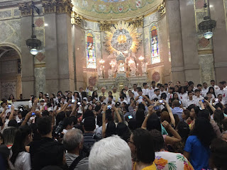 Hoje de manhã, durante a Missa que celebrou a primeira Eucaristia das crianças na Basílica Santuário de Nazaré, o simpático padre Giovanni, ao mostrar didaticamente a utilidade de cada objeto litúrgico aos pequenos, disse que a Pala (cobertura quadrangular para o cálice) é necessária pra proteger o conteúdo sagrado. Ante os olhares arregalados dos meninos e meninas, ele exemplificou a necessidade: outro dia, ao celebrar Missa embaixo de uma mangueira, em Irituia(PA), caiu uma aranha no cálice. E ele tomou o vinho com ela e tudo. É que o líquido já estava consagrado e não podia jogar fora o sangue de Cristo, contou o sacerdote, com muita humildade e fervor.