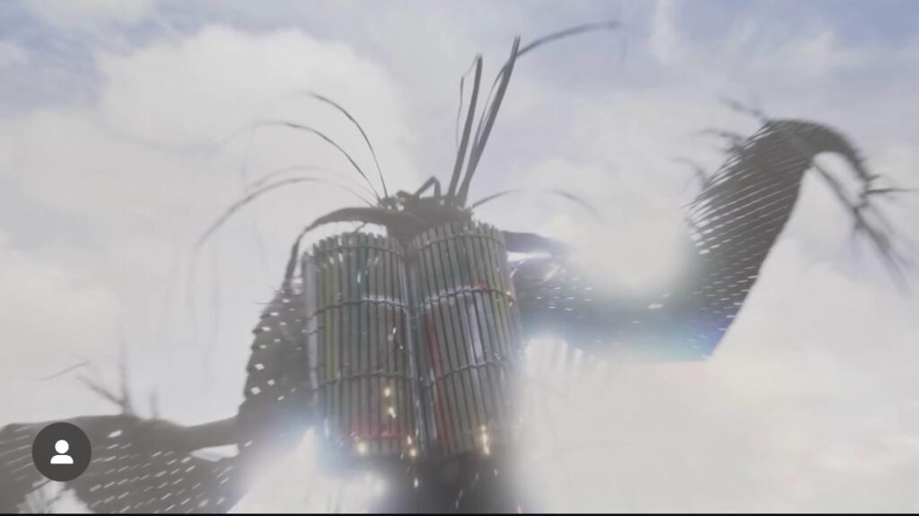 Uma barqueira, interpretada pela cantora e compositora Iris da Selva, guia um conteúdo digital em 3D que é projetado em uma das paredes do espaço em looping, conduzindo travessias por cidades-cardume, florestas biossintéticas, mercados de seca e chuva e aparelhagens robóticas – mundos que são ao mesmo tempo utópicos, distópicos e fantásticos.