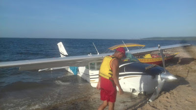 Há poucos minutos, uma aeronave com quatro passageiros fez pouso forçado nas águas do rio Tapajós, em plena praia do Pajuçara, em Santarém(PA). Ninguém se feriu com gravidade, aparentemente. O piloto ficou no local aguardando a ação do Corpo de Bombeiros e os passageiros -uma enfermeira e dois índios da etnia Wai Wai, que vivem na reserva Mapuera, em Oriximiná -, foram levados ao hospital municipal. Os banhistas salvaram as pessoas, retirando todos do avião imediatamente. As fotos são dos Bombeiros.