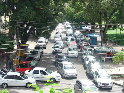 Todo dia é a mesma balbúrdia. Na babel que é aquela rua curta e estreita, entre a Senador Lemos e a Jerônimo Pimentel, em Belém, sempre congestionada por causa do TRT 8ª Região, estacionam em fila dupla, param no meio do cruzamento, perpendicular à pista de rolagem, o buzinaço é ensurdecedor – e olhem que tudo isso fica em frente ao Hospital do Exército -. Detalhe: na esquina da D. Pedro I com Senador Lemos, fica um guarda da Ctbel, escondido. Nada vê e nem faz. Vejam a que ponto chega o abuso dos motoristas de táxi no ponto da praça Brasil. As fotos são do Ivan Ferreira.