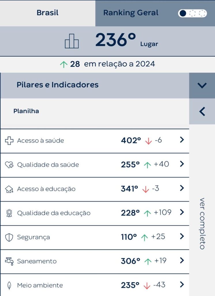 O acesso à Saúde é um desastre, ficou em 402º lugar. O acesso à educação, idem, 341° (caiu 3 pontos em relação a 2024). No Saneamento, ibidem, 306º. Em Telecomunicações, 329ª colocação. Meio Ambiente, 235ª. A população de Belém é de 1.398.531 habitantes. O setor predominante é o de serviços.