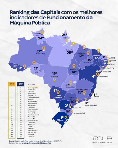 De acordo com o CLP, o Ranking de Competitividade mostra que uma gestão eficiente, transparente e com servidores qualificados é decisiva para impulsionar os municípios. Reduzir custos de transação e a burocracia aumenta a produtividade e cria um ambiente mais favorável ao investimento e à inovação. O pilar avalia indicadores como custo da função administrativa e legislativa, qualificação dos servidores, qualidade da informação contábil e fiscal, transparência e tempo para abertura de empresas. Uma espécie de Raios-X no funcionamento da máquina pública.