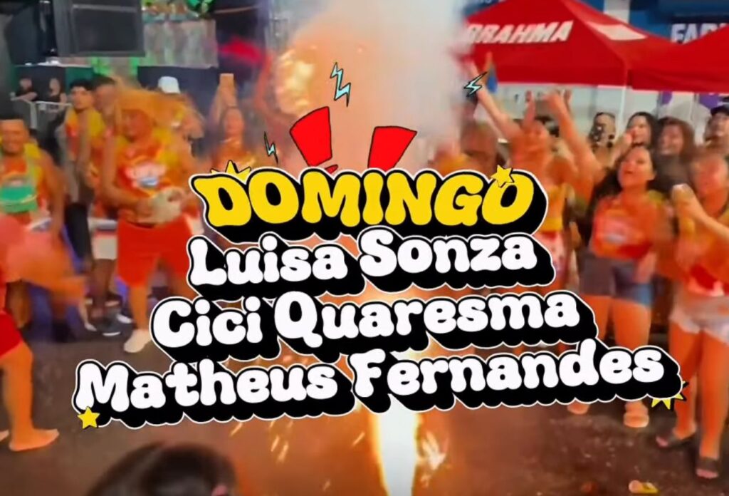 O domingo será animado por Luísa Sonza, Cici Quaresma e Matheus Fernandes.