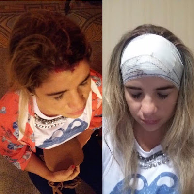 Melissa foi levada para o hospital da Unimed, fez tomografia, levou pontos na cabeça e o traumatologista falou que, se tivesse sido atingida três centímetros mais para trás, sofreria grave traumatismo craniano e, fosse numa criança, teria ido a óbito. Ela já registrou BO e foi submetida a exame de corpo de delito. Testemunhas não faltam.