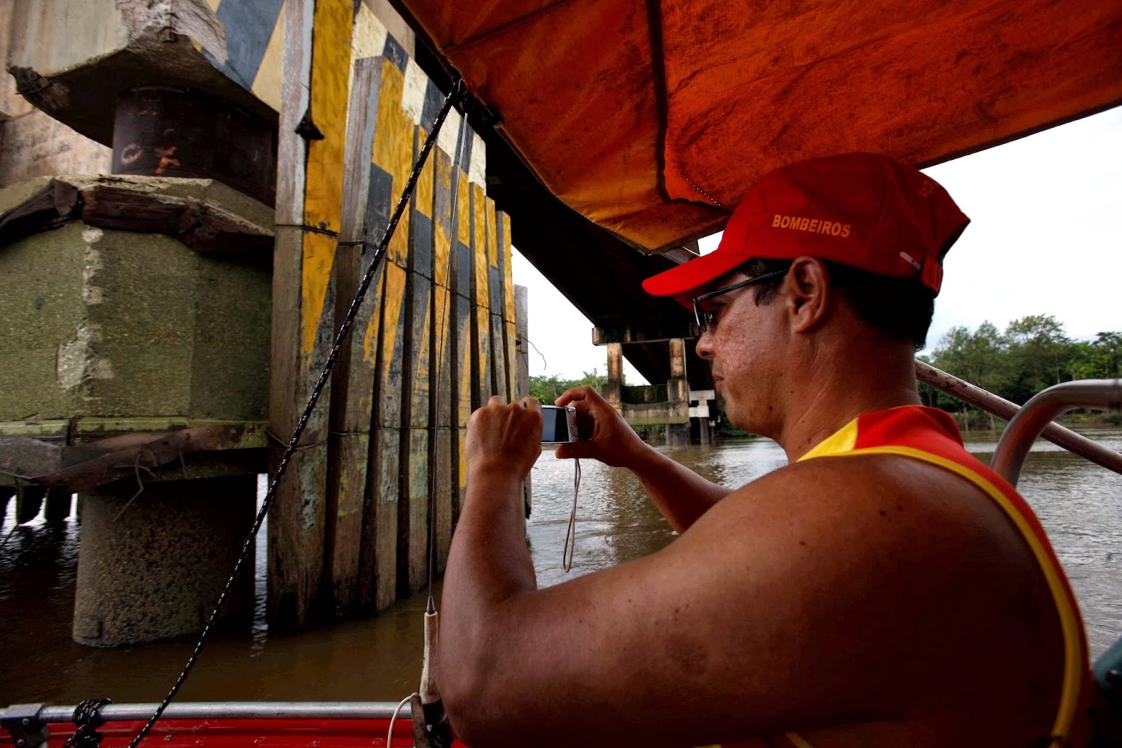 Eu cantei a pedra outro dia. Hoje de madrugada uma balsa colidiu com a estrutura da ponte “Enéas Pinheiro”, que liga os distritos de Icoaraci e Outeiro, em Belém. À tarde, os peritos criminais e engenheiros civis Orley de Moraes e Benedito Cardoso, do setor de Engenharia Legal do Centro de Perícias Científicas Renato Chaves, fizeram inspeção visual, a medição do local onde ocorreu a colisão e o levantamento fotográfico, avaliando a estrutura do pilar atingido.