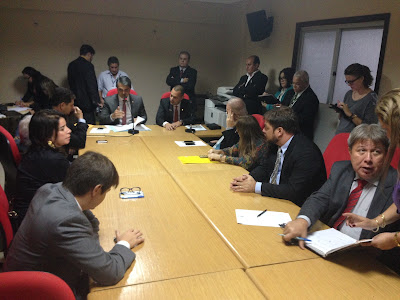 Em reunião conjunta da Comissão de Fiscalização Financeira e Orçamentária e Comissão de Segurança Pública, presididas pelos deputados Júnior Hage(PR) e Coronel Neil(PSD), respectivamente, foi aprovado hoje, à unanimidade, o projeto de lei nº 272/2015, de iniciativa do Poder Executivo, que reestrutura a Superintendência do Sistema Penal e cria o Fundo Penitenciário do Estado do Pará, com cinco emendas fruto de acordo entre os parlamentares (inclusive de oposição) e o governo. A matéria tramita em regime de urgência e não demora a ir ao plenário da Assembleia Legislativa. Os deputados Airton Faleiro(PT) e Ozório Juvenil(PMDB) fizeram questão de se pronunciar reconhecendo a necessidade do projeto e os avanços que ele representa, além de elogiar a condução das negociações: a convite do presidente da Alepa, deputado Márcio Miranda(DEM), o coronel André Cunha, superintendente da Susipe, foi várias vezes reunir com os parlamentares, detalhar e explicar as mudanças propostas; ao final, todas as bancadas sanaram as dúvidas e conseguiram emplacar emendas, em pleno acordo com o governo.  A articulação de Márcio Miranda rendeu uma votação sem discussão e até aplausos para o coronel André Cunha.