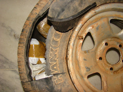 Vejam só onde a PF achou, na noite da sexta-feira passada, 20 Kg de cocaína em forma de pasta base, em uma barreira policial perto de Moju(PA): no pneu reserva de uma S-10 com placas de Ariquemes(RO), conduzida por um paranaense que trabalhava em um garimpo de Itaituba. A droga ia para Belém.