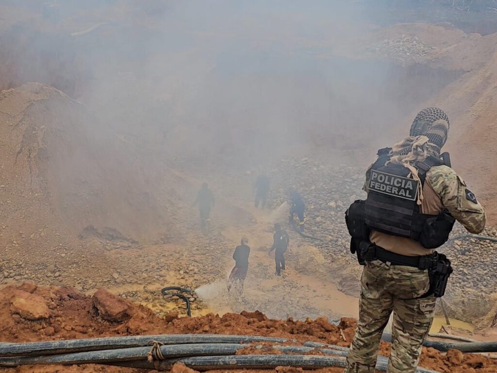 A Polícia Federal, em ação conjunta com a Funai, executou a 4ª Fase da Operação Rio Fresco, de combater à exploração ilegal de recursos minerais no município de Ourilândia do Norte (PA), dentro da Terra Indígena Kayapó. Duas dragas que estavam funcionando ilegalmente no leito do rio Fresco, na atividade garimpeira, foram destruídas no local e os responsáveis identificados. Na sequência, a PF identificou um garimpo ilegal às margens do rio, onde foram destruídos um acampamento, motores e uma escavadeira hidráulica. Também foram apreendidos aparelhos celulares e uma arma de fogo do tipo pistola, calibre 9 milímetros.