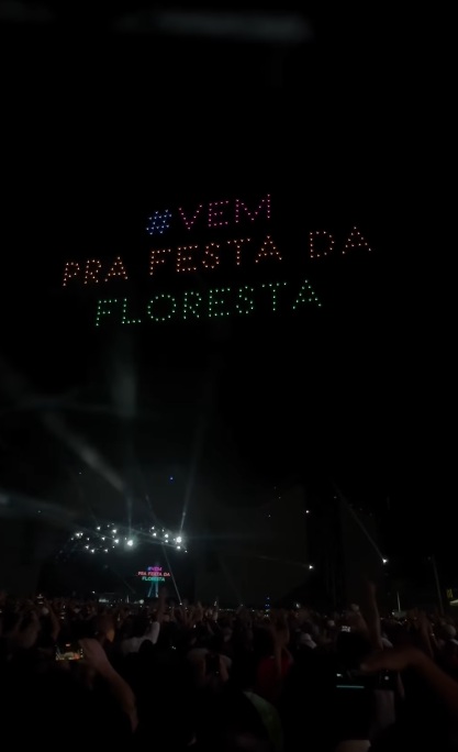 Na segunda noite da 43ª edição do Festival do Abacaxi, em Barcarena, o público vibrava a cada palavra ou imagem formada pelos drones durante o show de Alok. Conhecido por utilizar tecnologia durante suas apresentações, assim como seu esforço na atuação em causas socioambientais, a equipe do dj brasileiro reproduziu nos céus de Barcarena o tema do festival escolhido para este ano: “Vem pra festa da floresta”.