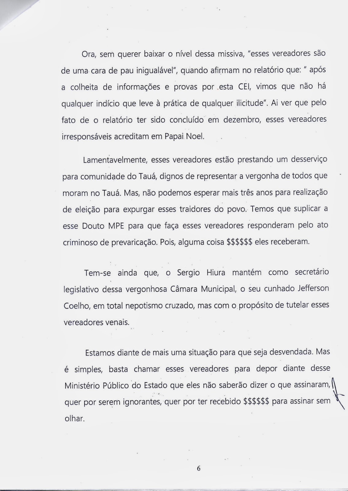 da sociedade local relataram oficialmente ao MPE, TJE e OAB – com cópias para