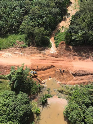 Domingo passado, dia 2, em meio às pesadas chuvas e enxurradas um bueiro rompeu na PA-150, na altura do Km 67, próximo ao entroncamento com a PA-256, no município de Tailândia, no nordeste paraense, e seccionou a rodovia estadual, uma das mais importantes do Pará. Para não deixar Tailândia isolada, o prefeito Paulo Jasper, o Macarrão, juntou uma força-tarefa, pôs seu próprio filho para operar maquinário e providenciou um aterro emergencial. Contudo, apesar dos esforços para manter a trafegabilidade, o trânsito deverá ser desviado para um pequeno atalho no terreno da Agropalma.