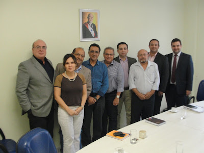 Os empresários César Ramalheiro, Roberto Branco e Alberto Oliveira, da Associação Comercial e Empresarial e do Sindilojas de Santarém, vieram a Belém tratar das providências para a implantação do primeiro Distrito Industrial do Oeste do Pará. Foram recebidos pelo presidente da Companhia de Desenvolvimento Econômico do Pará, Olavo das Neves, e os diretores Raimundo Wanderley, Helvio Arruda, Lucélia Guedes, Marinoel Manolo e Vitor Fonseca.