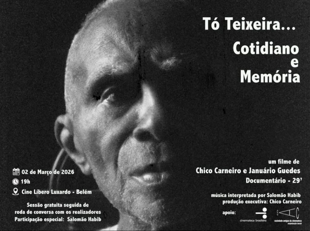 Quarenta e três anos depois de ter sido filmado em película 16 mm, o documentário “Tó Teixeira… Cotidiano e Memória” será exibido ao público nesta segunda-feira, 2 de março de 2026, às 19h, no Cine Líbero Luxardo, em Belém, com entrada gratuita. A sessão contará, antes da projeção, com um pocket show de Salomão Habib, reconhecido como o maior pesquisador sobre a vida e a obra de Tó Teixeira e um dos principais nomes do violão no país. Após o filme, haverá roda de conversa com os realizadores e com o próprio Habib.
