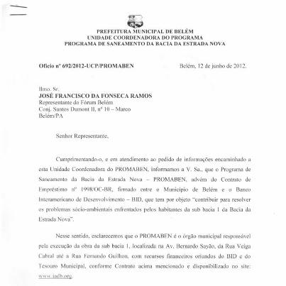 ofícios com pedido de informações (cronograma financeiro e físico) ao prefeito Duciomar