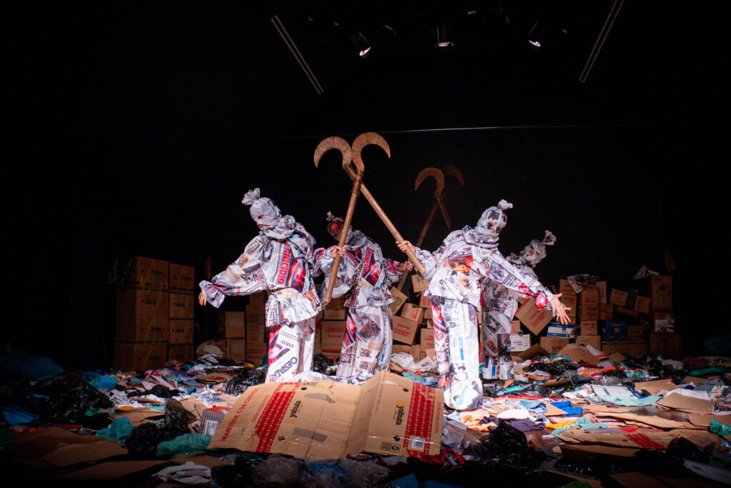 O espetáculo também denuncia o descarte inadequado de resíduos e o despejo de lixo em rios e mares, ampliando o debate sobre a poluição plástica e a contaminação por microplásticos, já detectados até na cadeia alimentar humana. A diretora geral e artística da montagem, Larissa Chaves, ressalta a importância de compreender a crise climática de forma ampla e interconectada: “quando a gente fala de mudança climática, a gente tem que pensar em vários elementos porque é um assunto muito complexo com diferentes camadas e uma dessas camadas é a gestão dos resíduos sólidos. Hoje, o plástico é um dos elementos mais produzidos e nós já temos tantas outras alternativas de materiais biodegradáveis para substituir a utilização. Esse é só um exemplo”.