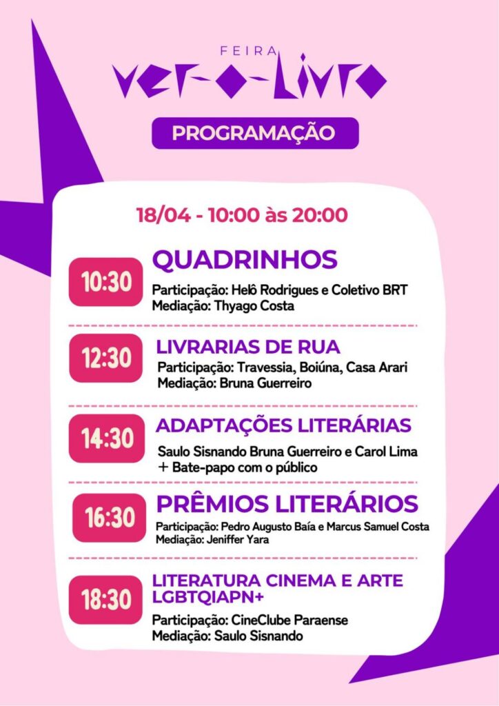 Neste sábado (18) será realizada, em Belém, a segunda edição da Feira Ver-O-Livro, que ocupará o Teatro Casa Saulo Sisnando (Travessa Quintino Bocaiúva, nº 2003) ao longo de dez horas de programação contínua. O evento, com entrada gratuita, reúne escritores, coletivos e iniciativas editoriais do Pará em uma proposta que contempla a produção literária independente, promovendo a circulação de livros através de encontros com o público e debates sobre diferentes campos da literatura.