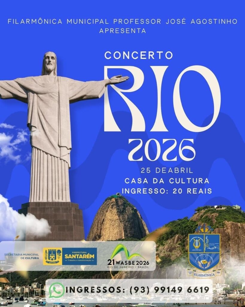 A Filarmônica Municipal Professor José Agostinho é uma das seis bandas sinfônicas brasileiras selecionadas para a Conferência Mundial da WASBE (World Association for Symphonic Bands), no Rio de Janeiro em julho deste ano. Para ajudar a custear as despesas de viagem está sendo promovida uma série de concertos iniciando no próximo dia 25, na Casa da Cultura, às 20h, com ingresso custando R$20, podendo ser adquirido pelo Whatsapp (93) 99149 6619 ou na hora do evento.