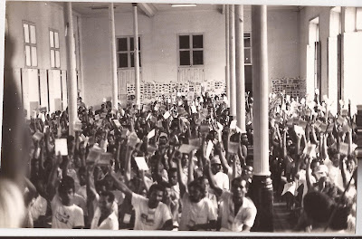 incluindo a greve geral da década de 80; e de passeatas e manifestações, como a