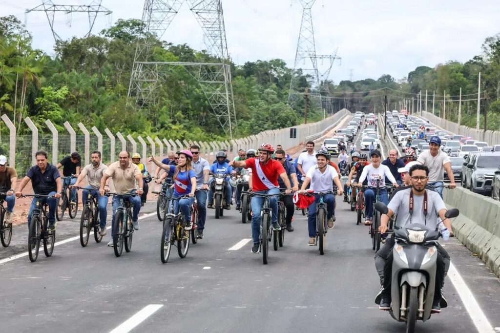 A última inauguração do governador Helder Barbalho, ao lado da nova governadora Hana Ghassan Tuma, do presidente da Alepa, deputado Chicão, do ministro Jader Filho e do prefeito de Belém Igor Normando, entre muitas outras autoridades, foi hoje, 2, entregando a polêmica Av. Liberdade, que conecta a Alça Viária à Avenida Perimetral e integra os municípios de Belém, Ananindeua e Marituba. O conceito é de via expressa: não há cruzamentos e nem sinais de trânsito ou redutores de velocidade. Um retorno foi construído no quilômetro 8.