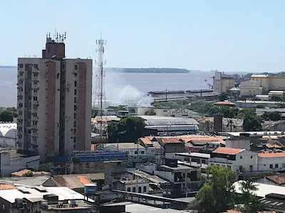 Um prédio branco que ainda não consegui identificar está incendiando na região da Doca de Souza Franco, em Belém.