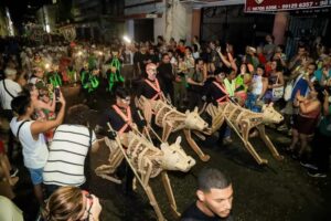 O tradicional Auto do Círio ocupou as ruas do centro histórico de Belém ontem (10) à noite, celebrando 32 anos de existência com o tema “Nossa Senhora de Nazaré, iluminai as lutas dos Povos da Amazônia”, que alia a fé mariana às reflexões sobre a pauta ambiental. Uma das novidades deste ano foi o Circo da Lona Preta, formado por pessoas em situação de rua, nascido do projeto “Rua na Arte”, com apoio da Secretaria de Estado de Cultura.