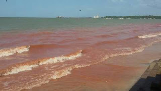 Sobre as fotos que mostram a água da praia com coloração avermelhada: