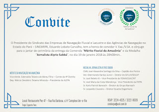 Amanhã o Sindarpa – Sindicato das Empresas de Navegação Fluvial e Lacustre e Agências de Navegação do Pará – outorga a comenda Mérito da Navegação na Amazônia ao vice-almirante Edervaldo Teixeira de Abreu Filho, comandante do IV Distrito Naval, e ao deputado Márcio Miranda, presidente da Alepa. Serão condecorados com a medalha Jornalista Alyrio Sabbá o capitão de mar-e-guerra José Alexandre Santiago da Silva, capitão dos Portos do Pará e Amapá; o delegado Dilermando Dantas Jr., diretor do Grupamento Fluvial da Segup; e os empresários José Rebelo III, vice-presidente da Fenavega; José Maria da Costa Mendonça, vice-presidente da Fiepa; Karlo Patrick Bannach, diretor do grupo Bannach; e Leopoldo Couceiro, diretor da Quadra Engenharia.
