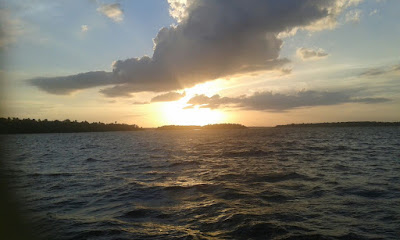 O por do sol em Belém do Pará foi incrível, hoje. O céu azul com nuvens brancas de repente começou a incendiar, os raios multicores – amarelos, alaranjados, vermelhos – com um risco aqui e outro acolá, contrastando fortemente com as águas mansas do rio Pará/Tocantins/Guamá, subitamente azuis, levemente açuladas por uma brisa tépida, parecia uma pintura a impactar mentes e corações.