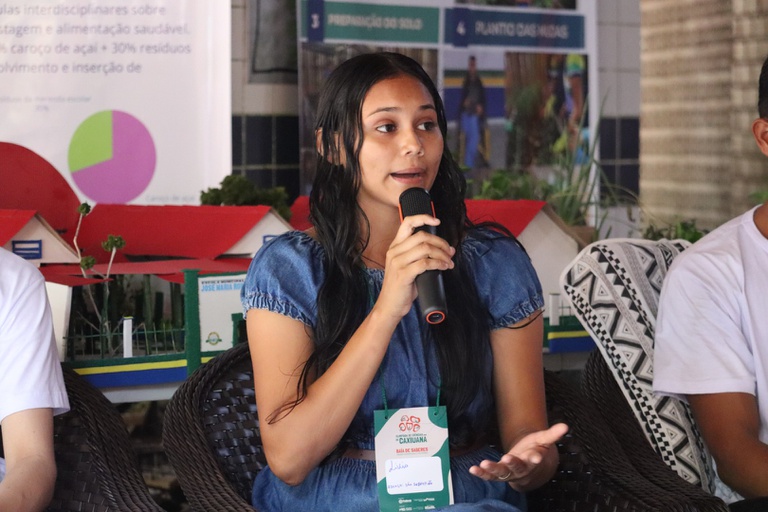 Um dos exemplos de continuidade foi Pedro Brazão, nascido em Caxiuanã. Ele participou como aluno em 2018 e este ano retornou como bolsista e ministrante da oficina sobre conservação do peixe-boi. “Eu vim falar sobre a importância de proteger o peixe-boi, que é um símbolo da nossa região e está ameaçado de extinção”, disse, satisfeito com o engajamento da turma. Seus alunos criaram um jogo didático que agora poderá ser aplicado nas escolas.