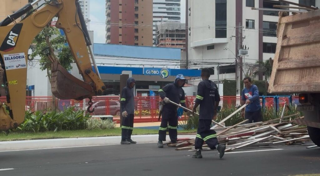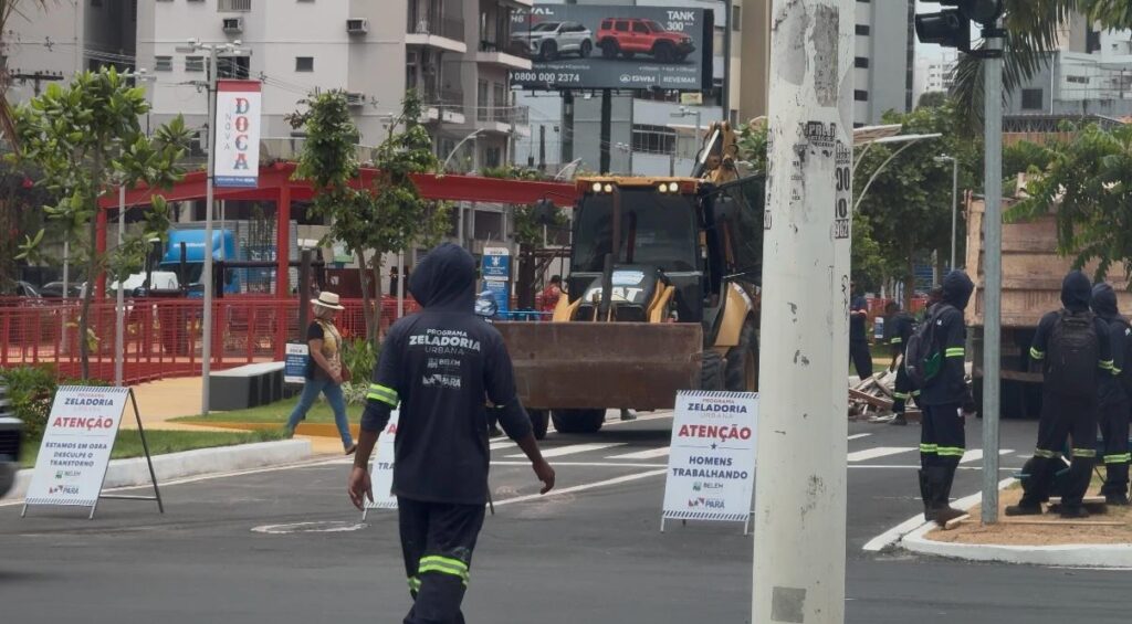 Ontem (2) à noite o governador Helder Barbalho inaugurou, com a presença do presidente Lula, o Parque Linear da Nova Doca. Mas a obra não está pronta. Tanto que hoje continua a semi-interdição da Av. Visconde (Doca) de Souza Franco, com caminhões, ferragens, madeiras e equipamentos atravancando tudo.