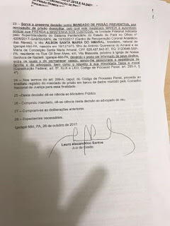 O ex-prefeito de Igarapé Miri, Ailson Santa Maria do Amaral, o Pé de Boto, que estava gozando o benefício da prisão domiciliar, foi preso pelo delegado Társio Martins ao comparecer ao Fórum local, hoje, por determinação do juiz Lauro Alexandrino Santos, requerida pelo Ministério Público estadual. Leiam, com exclusividade, a íntegra da decisão que culminou com o mandado de prisão. O delegado Társio fez o procedimento na DRCO e Pé de Boto seguiu para fazer perícia no IML, como é praxe nesses casos.