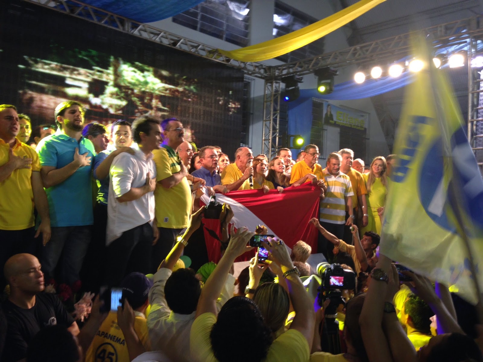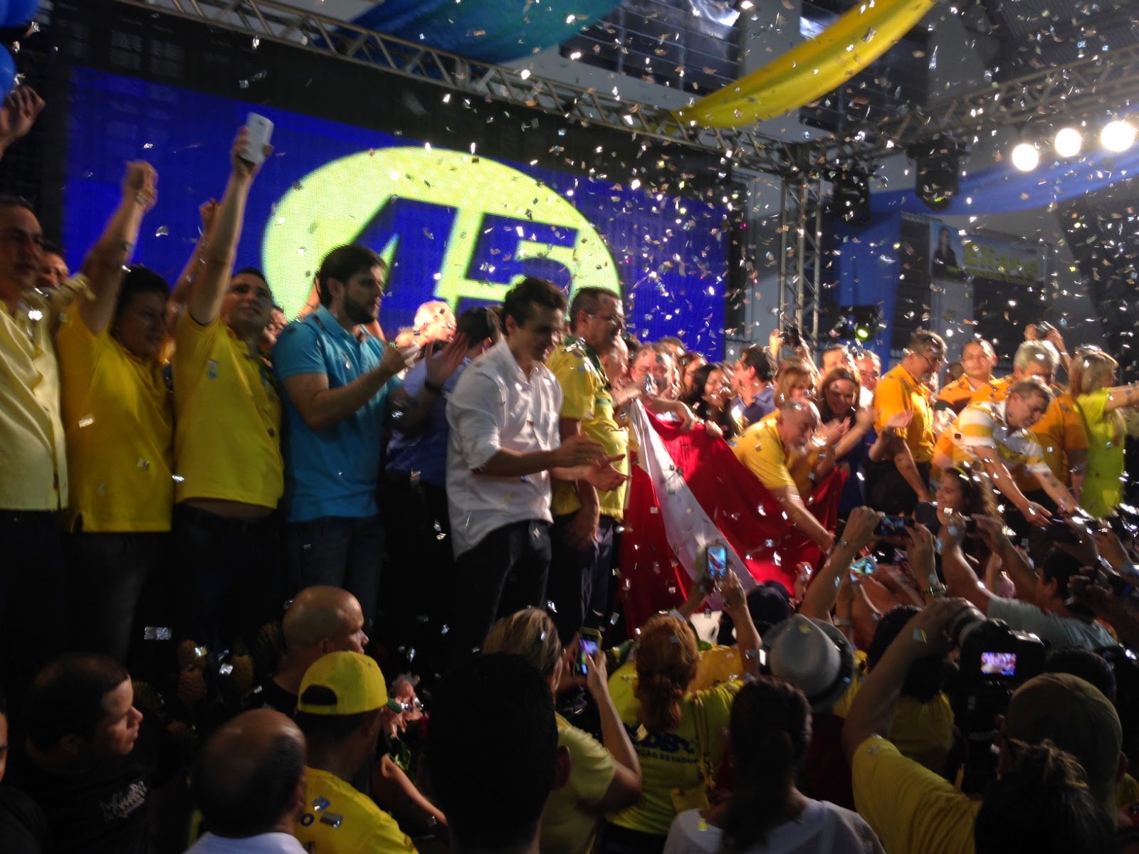 A convenção do PSDB aclamou o governador Simão Jatene para governador do Pará. Lá estavam o senador Mário Couto, a deputada Cilene Couto, o deputado Nilson Pinto, o presidente do partido, senador Flexa Ribeiro, deputados estaduais e federais, prefeitos e vereadores, militantes e simpatizantes, inclusive de partidos aliados, menos os prefeitos de Belém, Zenaldo Coutinho, e de Santarém, Alexandre Von, que estão viajando de férias para a Europa. Jatene fez um discurso contundente em favor do desenvolvimento do Estado e encerrou com o Hino do Pará, entoado por todos.
