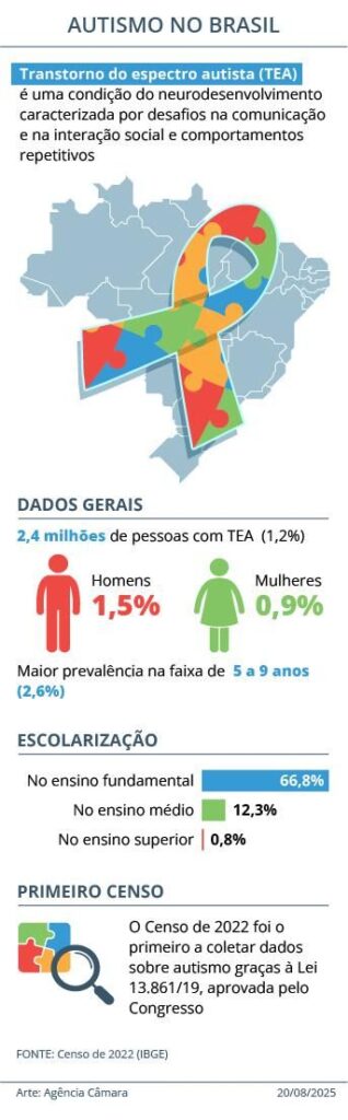 O censo do IBGE de 2024 aponta 2,4 milhões de autistas no Brasil. A prevalência mundial é de 1% a 2% da população de cada país. Conhecer as dificuldades dessa parcela da sociedade permite ao poder público criar políticas específicas.