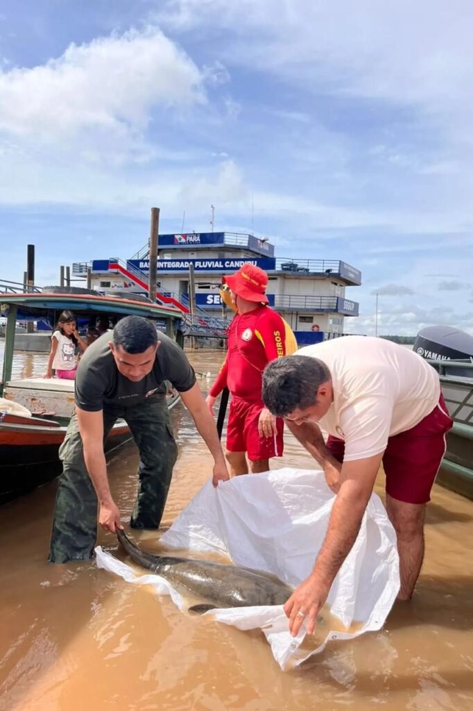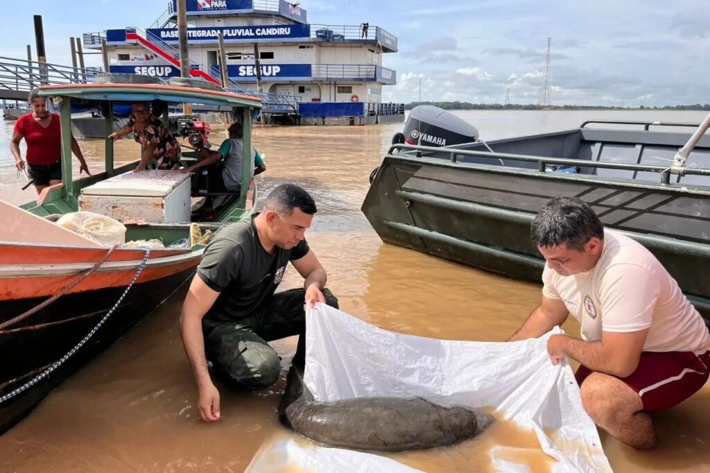 Equipe da Base Fluvial Integrada Candiru, da Secretaria de Estado de Segurança Pública e Defesa Social, resgatou na manhã desta quinta-feira (5) um filhote de peixe-boi às proximidades da orla de Óbidos, no oeste do Pará. O animal, cuja espécie é considerada ameaçada de extinção, estava muito ferido. A operação contou com o apoio da Secretaria Municipal de Meio Ambiente (Semma) no processo de captura, contenção e manejo adequado do filhote, seguindo protocolos técnicos voltados à proteção da fauna.