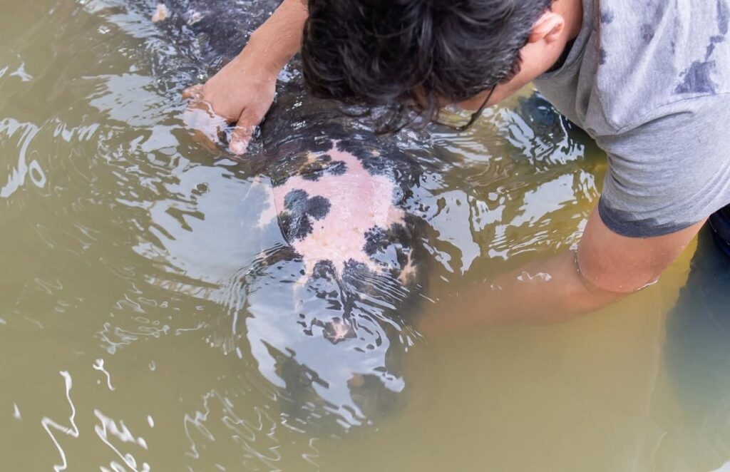 Um peixe-boi adulto foi resgatado ontem de manhã em uma área ribeirinha de Barcarena, no nordeste do Pará. A espécie está em risco de extinção, e o animal foi encontrado encalhado na beira do rio na comunidade Utinga-açu, na Ilha Trambioca, na quinta-feira (15), por um morador, que acionou o Corpo de Bombeiros Militar para o primeiro atendimento ainda durante a noite. Na sexta-feira (16), uma equipe da Secretaria Municipal de Meio Ambiente de Barcarena retornou ao local junto com o 6º GBM de Barcarena para realizar a captura segura do mamífero aquático. O peixe-boi foi encaminhado ao Ibama, em Belém, para os cuidados necessários.