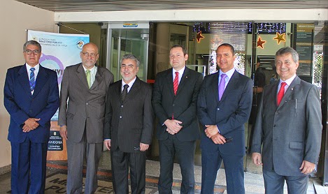 Os candidatos com os presidentes da Ampep e da comissão eleitoral