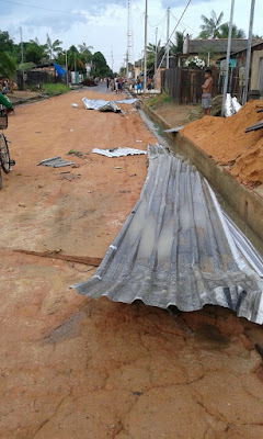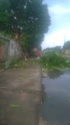 Está chovendo granizo em Oriximiná. Um temporal com descargas elétricas e ventos fortíssimos derrubou árvores e até um poste de distribuição de energia elétrica. Residências foram destelhadas, principalmente no conjunto Tia Ana, de casas populares; e voaram tampas de caixas d’água. No sítio do meu irmão, Francisco Florenzano, que fica na nascente do lago Iripixi, a horta foi dizimada e a estufa quebrou com o granizo. Tomatinhos cereja foram vitimados.