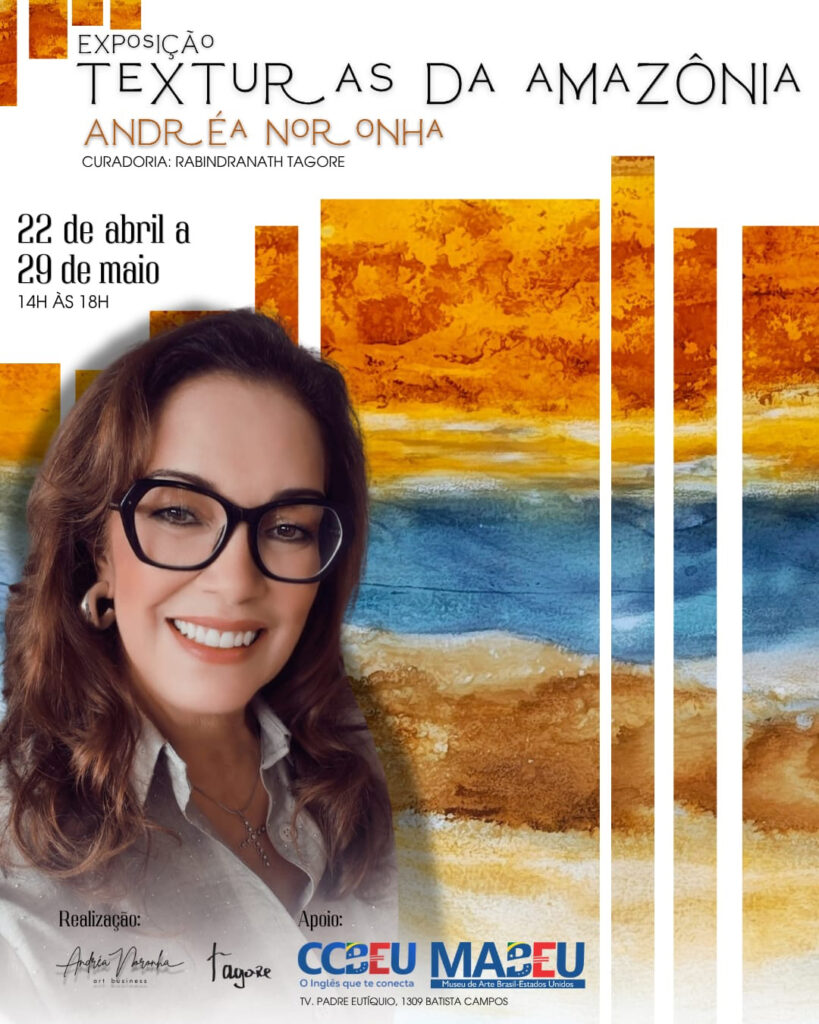 A mostra Texturas da Amazônia, da artista Andréa Noronha, será aberta ao público com um vernissage no dia 22 de abril, às 19h, na Galeria Edgar Contente, no Centro Cultural Brasil-Estados Unidos (CCBEU). A visitação segue de 23 de abril a 29 de maio, sempre das 14h às 18h. A entrada é aberta ao público.