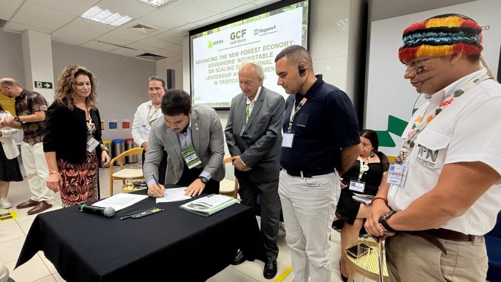 Dentro da programação da COP30 na Casa da Biodiversidade e Clima, localizada no Instituto Tecnológico Vale, em Belém (PA), houve a assinatura de um memorando de parceria entre a Força-Tarefa dos Governadores sobre Clima e Floresta (GCF Task Force) e a Associação de Universidades Amazônicas (Unamaz), destinada a promover a cooperação entre governos subnacionais e instituições acadêmicas, fortalecendo a atuação conjunta de universidades e centros de pesquisa nas jurisdições que integram a Força-Tarefa GCF em toda a Amazônia.
